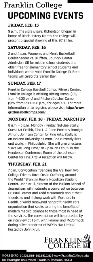 Feb 14, 2019. Franklin College Education Ads from Daily Journal