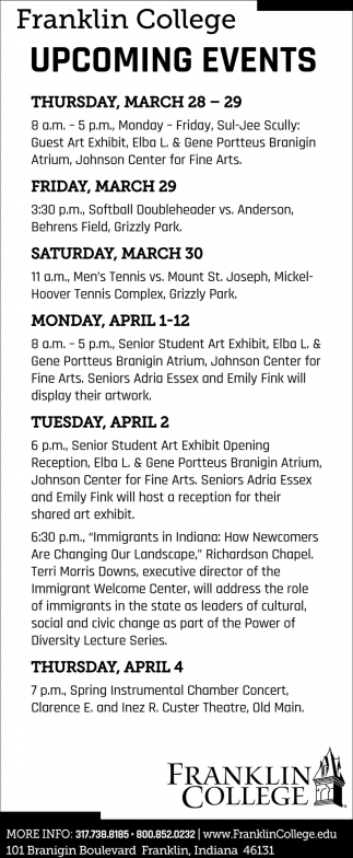 Mar 27, 2019. Franklin College Education Ads from Daily Journal