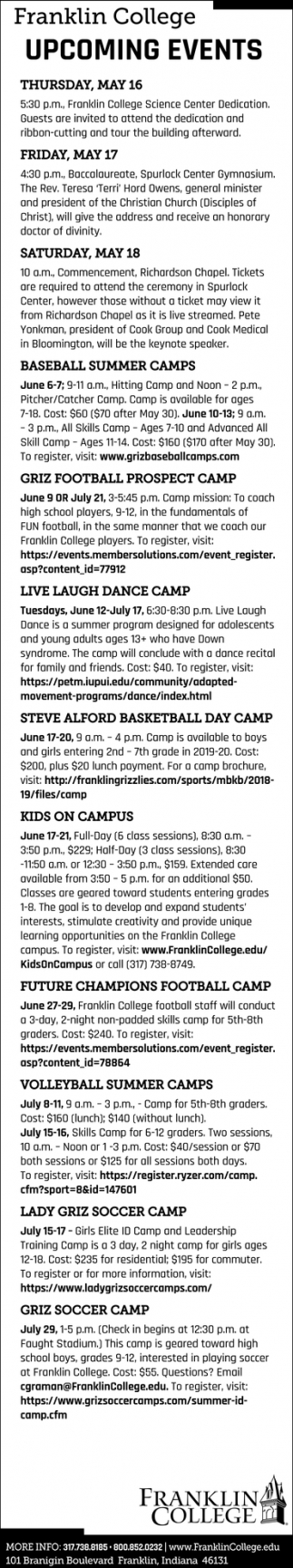 May 15, 2019. Franklin College Education Ads from Daily Journal