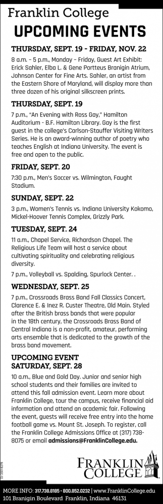 Sep 19, 2019. Franklin College Education Ads from Daily Journal