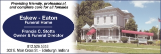 Ads for Eskew - Eaton Funeral Home in Edinburgh, IN