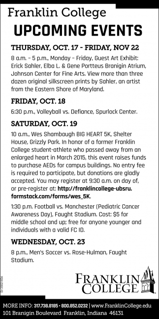 Oct 17, 2019. Franklin College Education Ads from Daily Journal