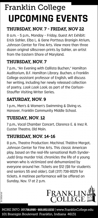 Nov 07, 2019. Franklin College Education Ads from Daily Journal