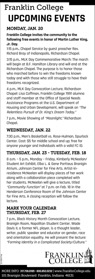 Jan 16, 2020. Franklin College Education Ads from Daily Journal