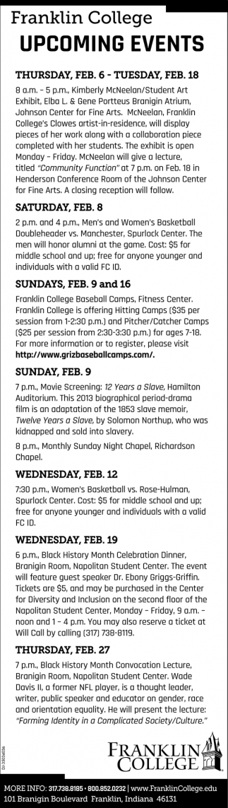 Feb 06, 2020. Franklin College Education Ads from Daily Journal