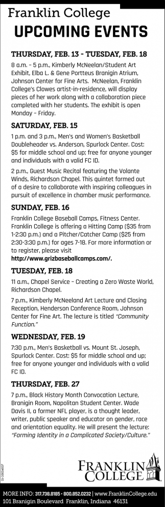 Feb 13, 2020. Franklin College Education Ads from Daily Journal