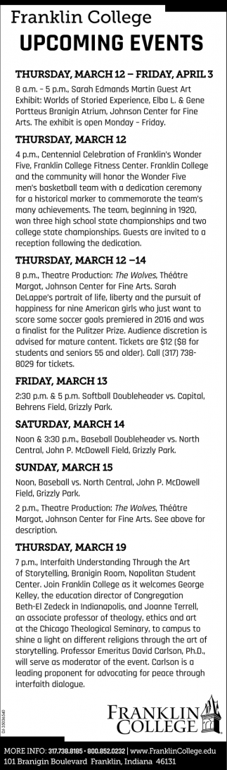 Mar 12, 2020. Franklin College Education Ads from Daily Journal