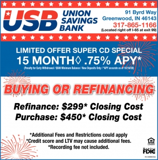 Ads for Union Savings Bank in Greenwood, IN