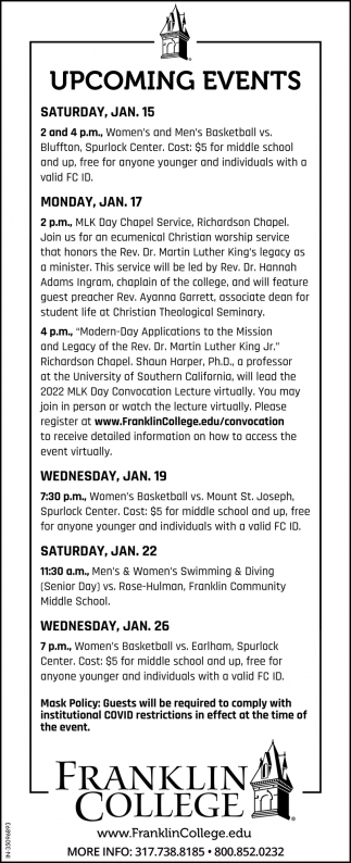 Jan 13, 2022. Franklin College Education Ads from Daily Journal