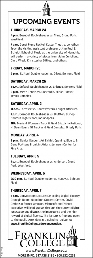 Mar 23, 2022. Franklin College Education Ads from Daily Journal