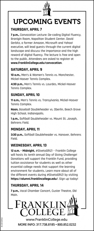 Apr 07, 2022. Franklin College Education Ads from Daily Journal