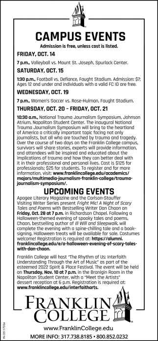 Oct 13, 2022. Franklin College Education Ads from Daily Journal