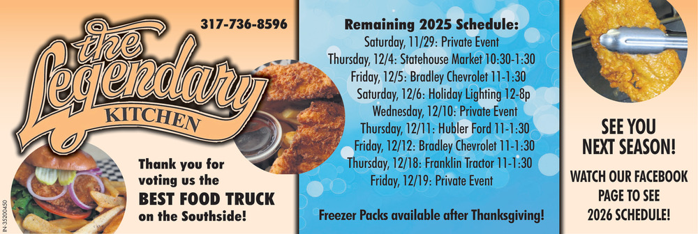 Ads for The Legendary Kitchen in Franklin, Indiana