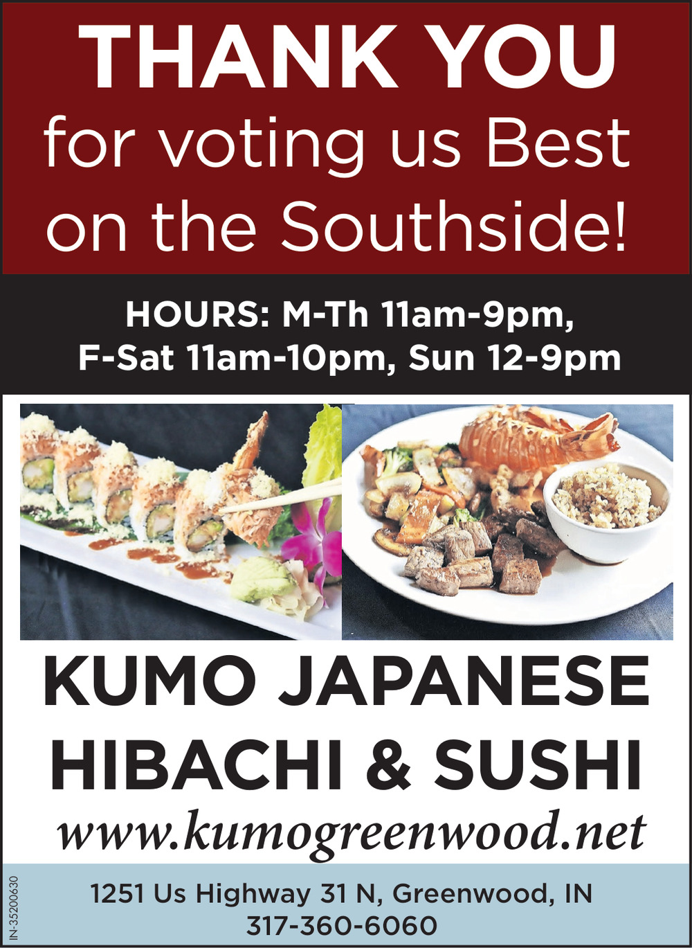 Ads for Kumo Japanese Hibachi & Sushi in Greenwood, IN