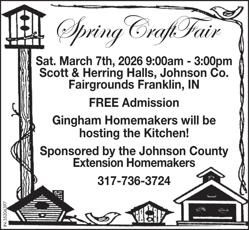 Ads for Spring Craft Fair (March 7, 2026) in Franklin, Indiana
